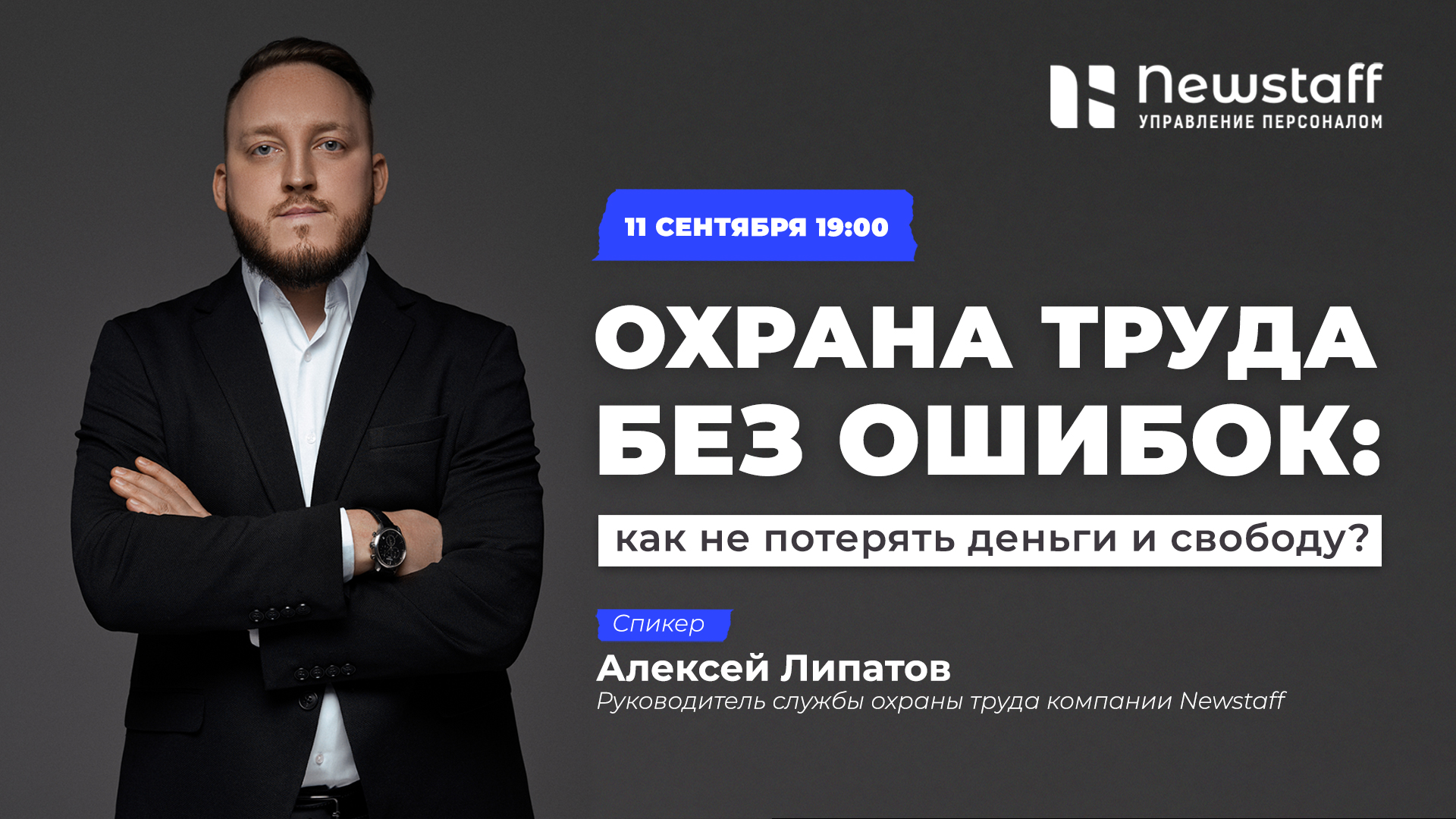 Спикер: Алексей Липатов, руководитель службы охраны труда компании Newstaff. Опыт более 10 лет, десятки кейсов и полное сопровождение бизнеса в кризисных ситуациях.